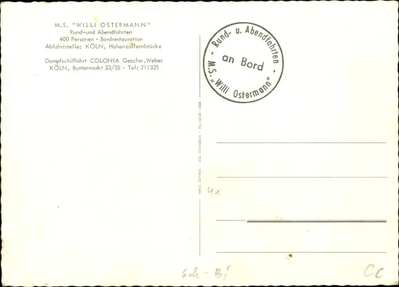 Ak Köln am Rhein, Rheindampfer Willi Ostermann, Rheinufer, Dom, Dampferanlegestelle