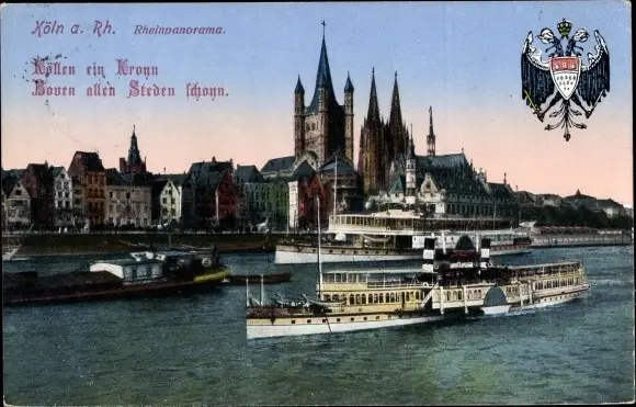 Ak Köln am Rhein, Rheinpanorama, Salondampfer, Wappen