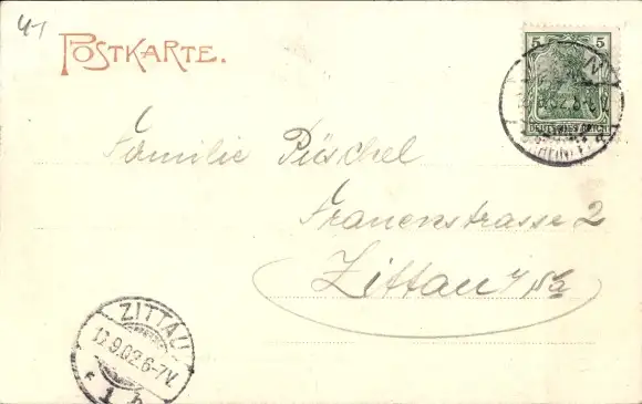 Zustand, siehe Scan, gelaufen, 1902 - ca 14 cm X 9 cm