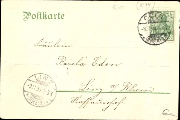 Zustand, siehe Scan, gelaufen, 1903 - ca 14 cm X 9 cm