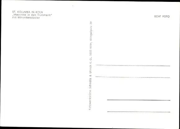 Ak Köln am Rhein, St. Kolumba, Madonna in den Trümmern mit Minoritenkloster