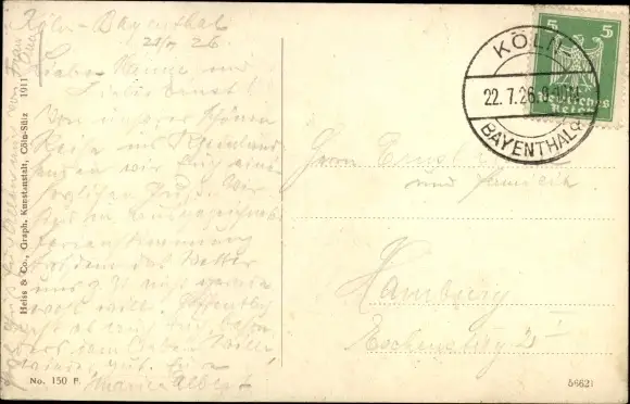Zustand, siehe Scan, gelaufen, 1926 - ca 14 cm X 9 cm