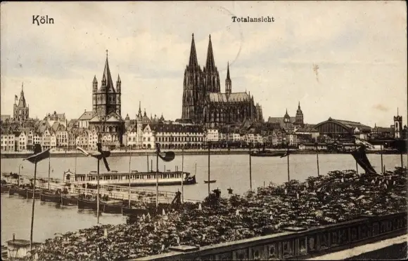 Ak Köln am Rhein, Totalansicht, Dom, Schiff