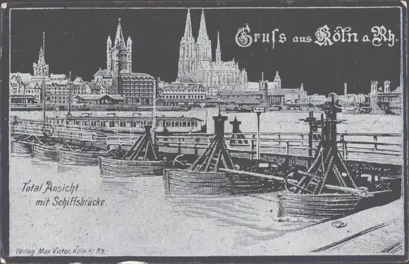 Ak Köln am Rhein, Totalansicht, Schiffsbrücke, Dom