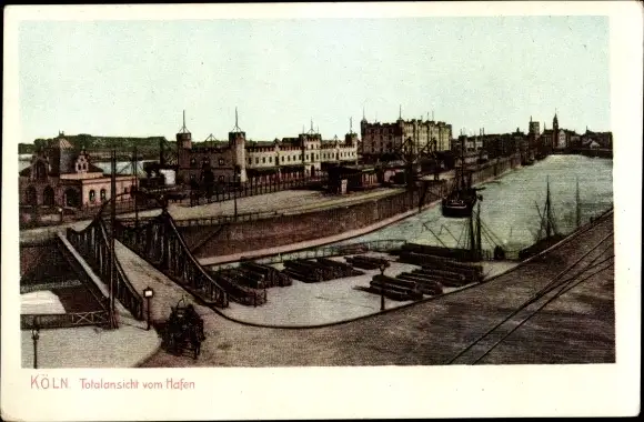Ak Köln am Rhein, Totalansicht vom Hafen, Brücke, Schiffe