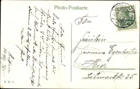 gelaufen 1911, Ecken bestoßen, Abriebspuren, Eckknicke, sonst guter Zustand