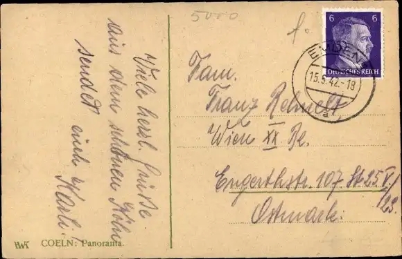 Zustand, siehe Scan, gelaufen, 1942 - ca 14 cm X 9 cm