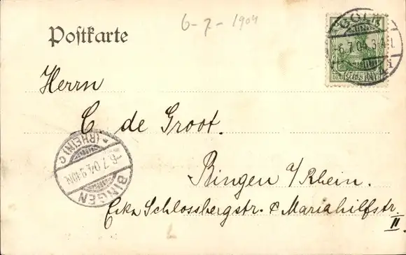Zustand, siehe Scan, gelaufen, 1904 - ca 14 cm X 9 cm