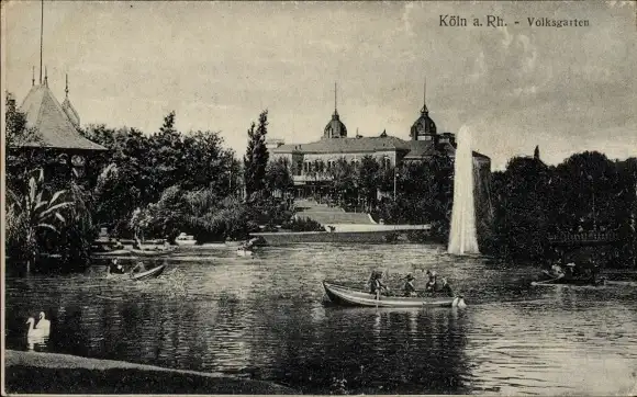 Ak Köln am Rhein, Volksgarten, Springbrunnen, Ruderboote