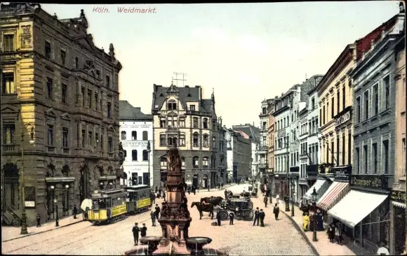 Ak Köln am Rhein, Waidmarkt, Straßenbahn, Denkmal