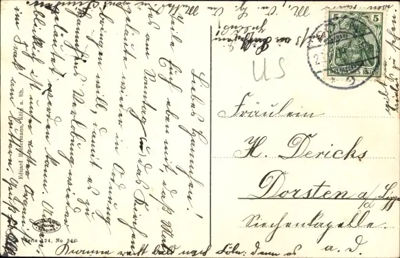 Zustand, siehe Scan, gelaufen, 1909 - ca 14 cm X 9 cm