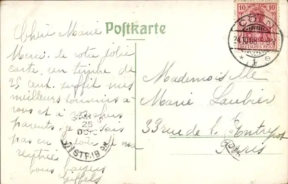 Zustand siehe Scan, 1908, gelaufen - ca 14 cm X 9 cm