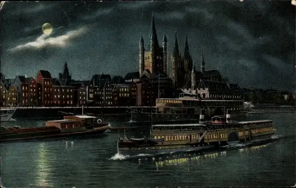 Ak Köln am Rhein, bei Nacht, Schiffe