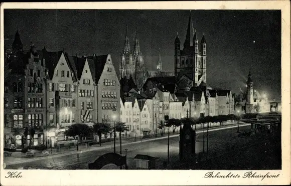 Ak Köln am Rhein, beleuchtete Rheinfront