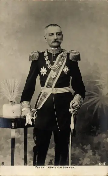 Ak Köng Peter I von Serbien, Portrait, Orden