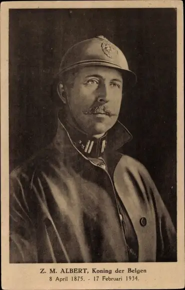 Ak König Albert I. von Belgien, Portrait in Uniform, Helm