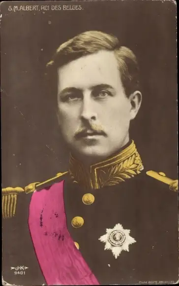 Ak König Albert I von Belgien, Portrait in Uniform, Orden