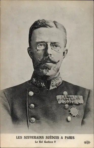 Ak König Gustav V von Schweden in Paris, Portrait, Uniform, Orden