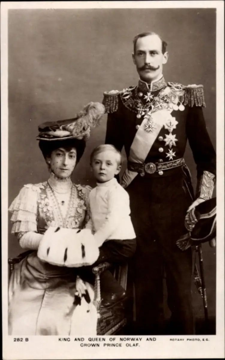 Ak König Haakon VII. von Norwegen, Königin Maud, Kronprinz Olav