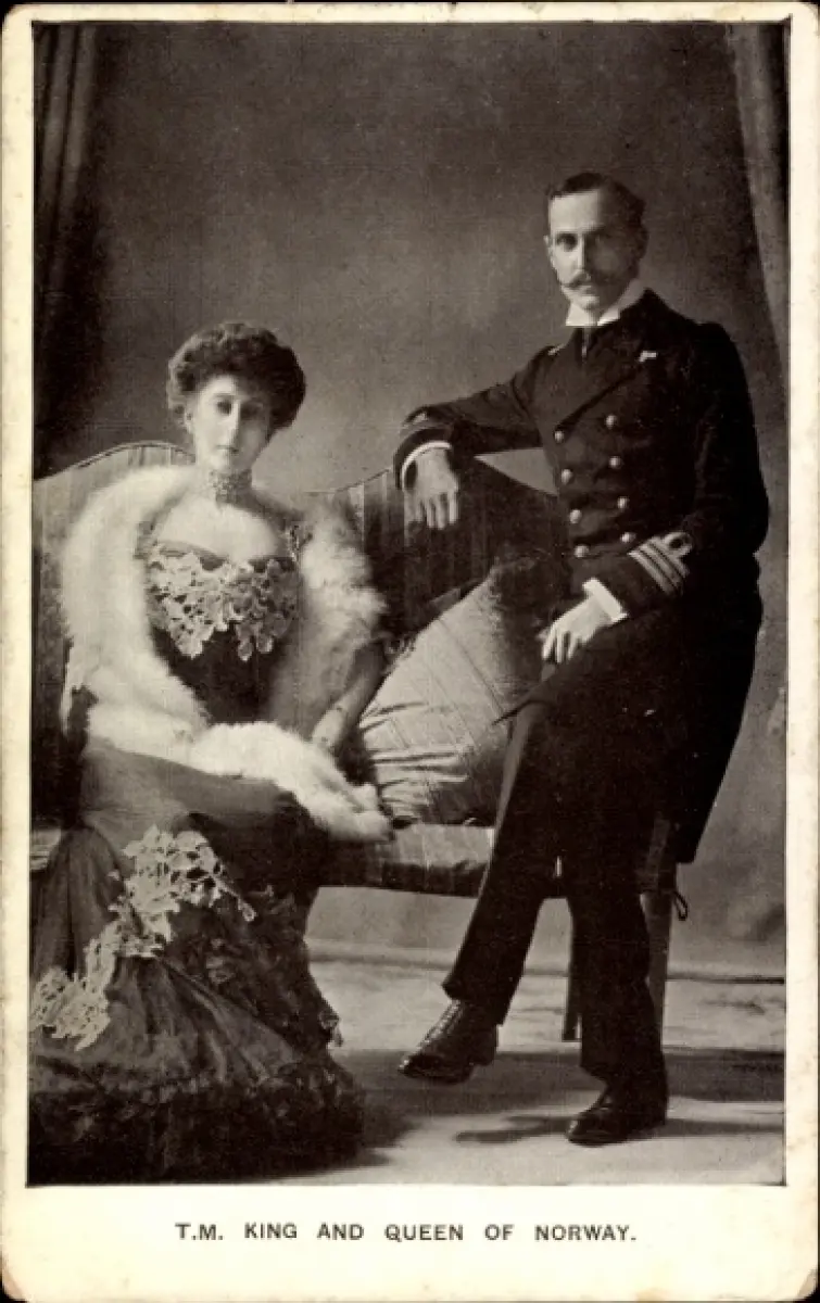 Ak König Haakon VII. von Norwegen, Königin Maud, Portrait