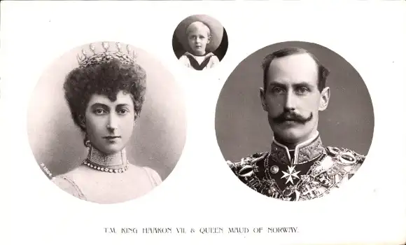 Ak König Haakon VII von Norwegen, Maud, Olav V