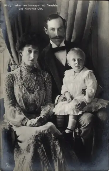 Ak König Haakon VII von Norwegen, Maud von Wales, Kronprinz Olav