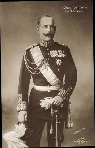 Ak König Konstantin von Griechenland, Portrait in Uniform, Orden