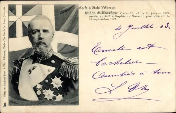 Ak König Oskar II. von Schweden, Portrait in Uniform