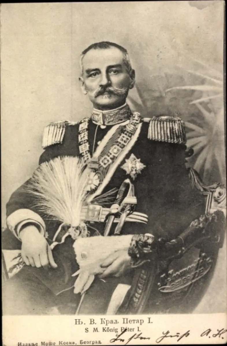 Ak König Peter I. von Serbien, Petar I., Portrait in Paradeuniform, Orden