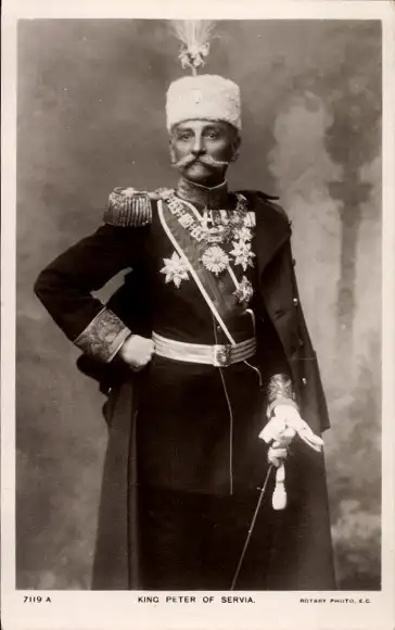 Ak König Peter I. von Serbien, Standportrait in Uniform