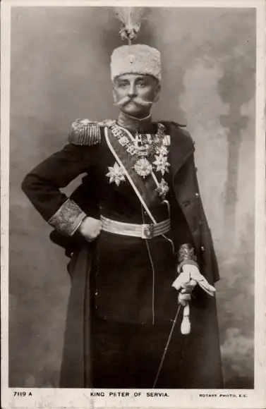 Ak König Peter I. von Serbien, Standportrait in Uniform