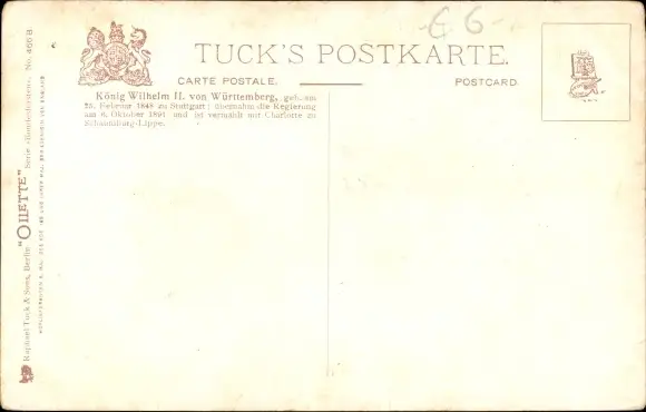 Ak König Wilhelm II. von Württemberg, Portrait