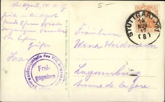 Zustand, siehe Scan, gelaufen, 1917 - ca 9 cm X 14 cm