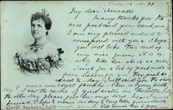 Ak Königin Amelia von Portugal, Portrait