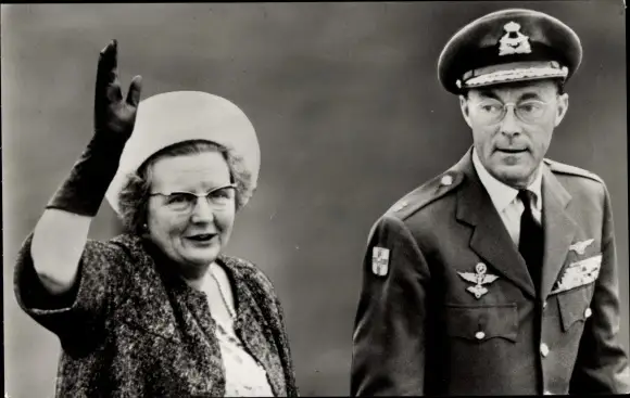 Ak Königin Wilhelmina der Niederlande, Prinz Bernhard in Uniform, Schiphol
