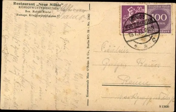 Ak Königs Wusterhausen in Brandenburg, Restaurant Neue Mühle