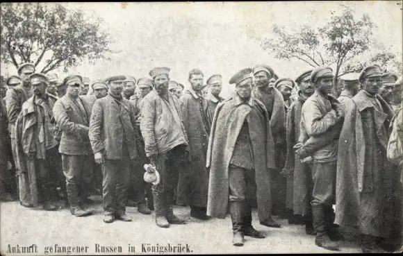 Ak Königsbrück in der Oberlausitz, Ankunft Kriegsgefangener Russen, I WK