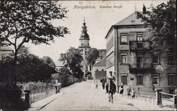 Ak Königsbrück in der Oberlausitz, Dresdner Straße, berittener Soldat
