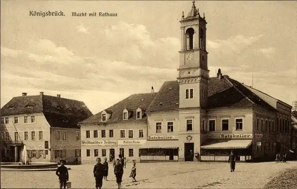 Ak Königsbrück in der Oberlausitz, Markt, Rathaus, Ratskeller