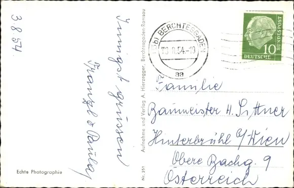 Zustand, siehe Scan, gelaufen, 1954 - ca 14 cm X 9 cm
