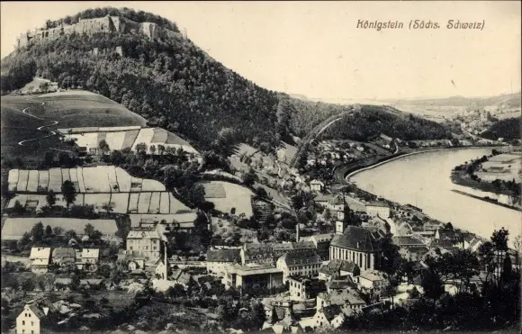 Ak Königstein an der Elbe Sächsische Schweiz, Festung, Kirche, Ortsansicht