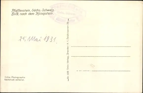 Ak Königstein an der Elbe Sächsische Schweiz, Pfaffenstein