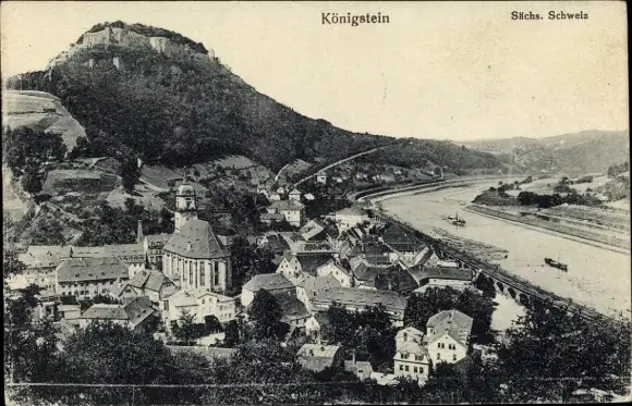 Ak Königstein an der Elbe Sächsische Schweiz, Totalansicht