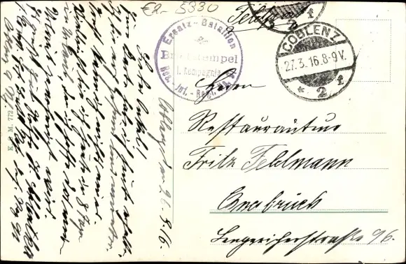 Zustand, siehe Scan, gelaufen, 1916 - ca 9 cm X 14 cm