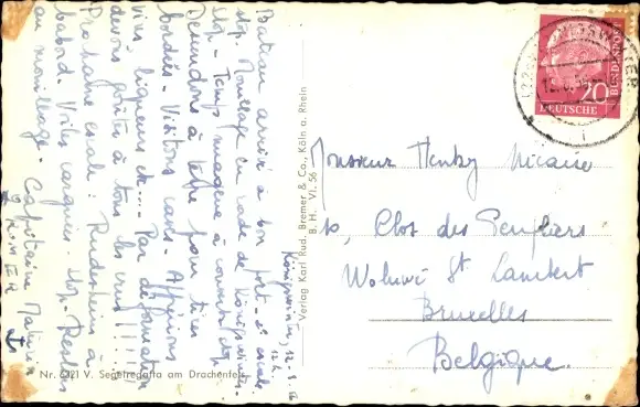 Zustand, siehe Scan, gelaufen, 1956 - ca 14 cm X 9 cm