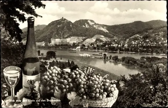 Ak Königswinter am Rhein, Drachenfels, Totalansicht vom Ort, Fluss, Wein