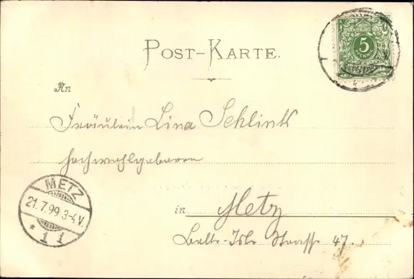 Zustand, siehe Scan, gelaufen, 1899 - ca 14 cm X 10 cm
