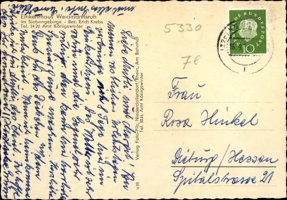 Zustand, siehe Scan, gelaufen- Bes. Erich Krebs - ca 15 cm X 10 cm