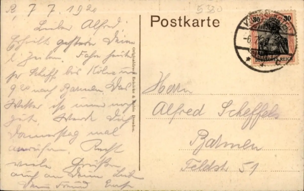 Zustand, siehe Scan, gelaufen, 1920 - ca 14 cm X 9 cm