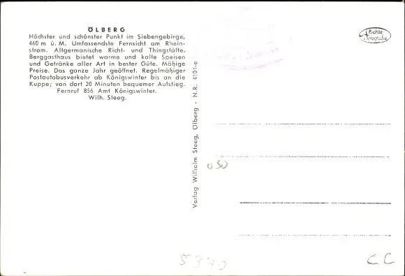 Ak Königswinter am Rhein, Oelberg, Ölberg, Siebengebirge